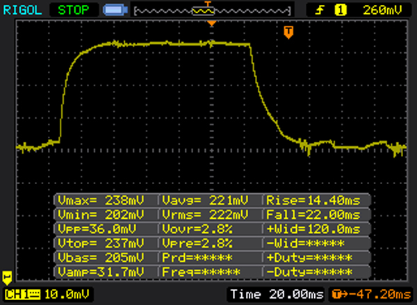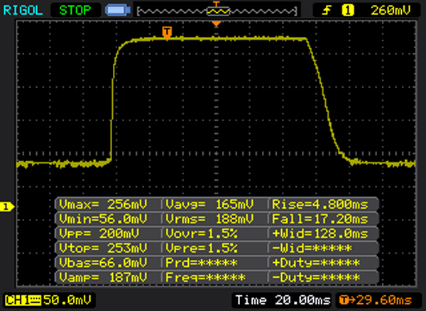 | 22 ms ... steigend ↗ und fallend ↘ kombiniert | ↗ 5 ms steigend | |