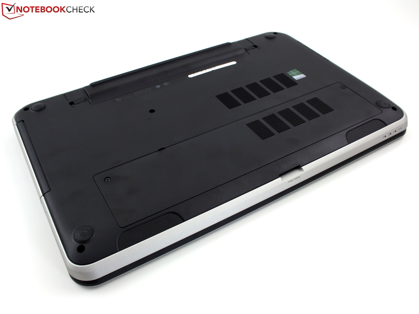 Die Base gibt sich auch von unter her druckfest und kann nur sehr begrenzt verzogen werden. Insgesamt ist die Stabilität für einen schweren 17-Zoller dieser Preisklasse sehr gelungen. Der gewählte Materialmix wirkt angemessen hochwertig. Eine ähnliche Beschaffenheit begegnet uns beim HP Envy dv7-7200sg (mattes Aluminium, gute Festigkeit).