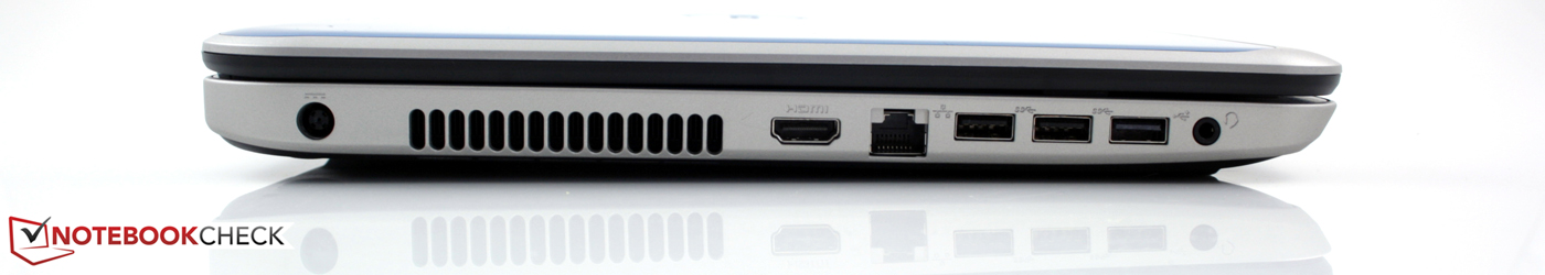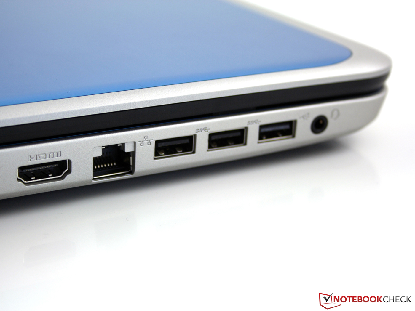 Die Bestückung mit Anschlüssen ist der Klasse entsprechend, wobei die vier USB-Ports (davon 2x USB 3.0) noch ein kleiner Vorteil sind. Konkurrenten wie das Lenovo G780 oder das Vaio SV-E17 sind ebenfalls mit vier solchen Ports ausgerüstet. Pavilion g7-2007 und EasyNote LV44HC besitzen jedoch nur drei. Keiner der Konkurrenten verzichtet auf den traditionellen VGA D-Sub. Für aktuelle TFTs ist das weniger problematisch, diese haben fast immer VGA, HDMI und DVI an Bord.
