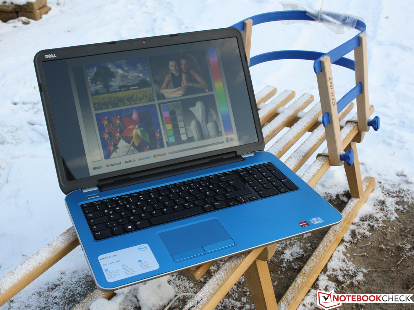 Unter freiem Himmel kann der Nutzer mit seinem 17R nur mit Einschränkungen etwas anfangen. Auf Grund der mäßigen Abwärme unter Last taugt der 17-Zoller an kalten Wintertagen zwar als Wärmekissen und Handwärmer, doch die Spiegelungen am Display und die klammen Finger an der Tastatur bereiten nicht lange Freude. Unsere Bilder entstanden bei Bewölkung; strahlender Sonnenschein würde den dunklen Desktop weiter verschlimmern. Um den Effekt etwas abzuschwächen, hätte die Helligkeit bei mindestens 350 cd/m² liegen müssen.