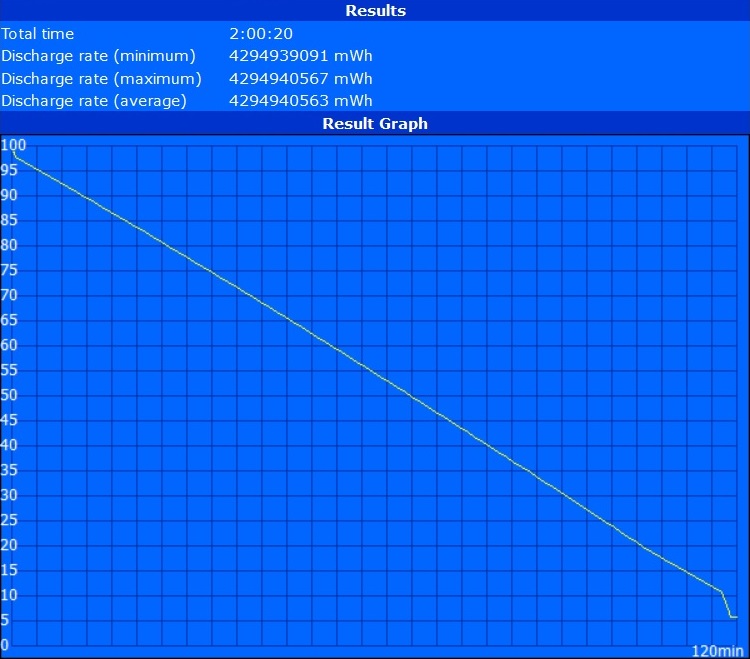 Obwohl die Akkukapazität mit 65 Wh keine Preise gewinnt, kommt der 17-Zöller erstaunlich gut ohne Netzteil zurecht. Ein minimaler Wert von 120 Minuten (hohe Last, 100 % Leuchtkraft) ist ebenso respektabel wie ein maximaler Wert von knapp neun Stunden (geringe Last, niedrigste Helligkeitsstufe).