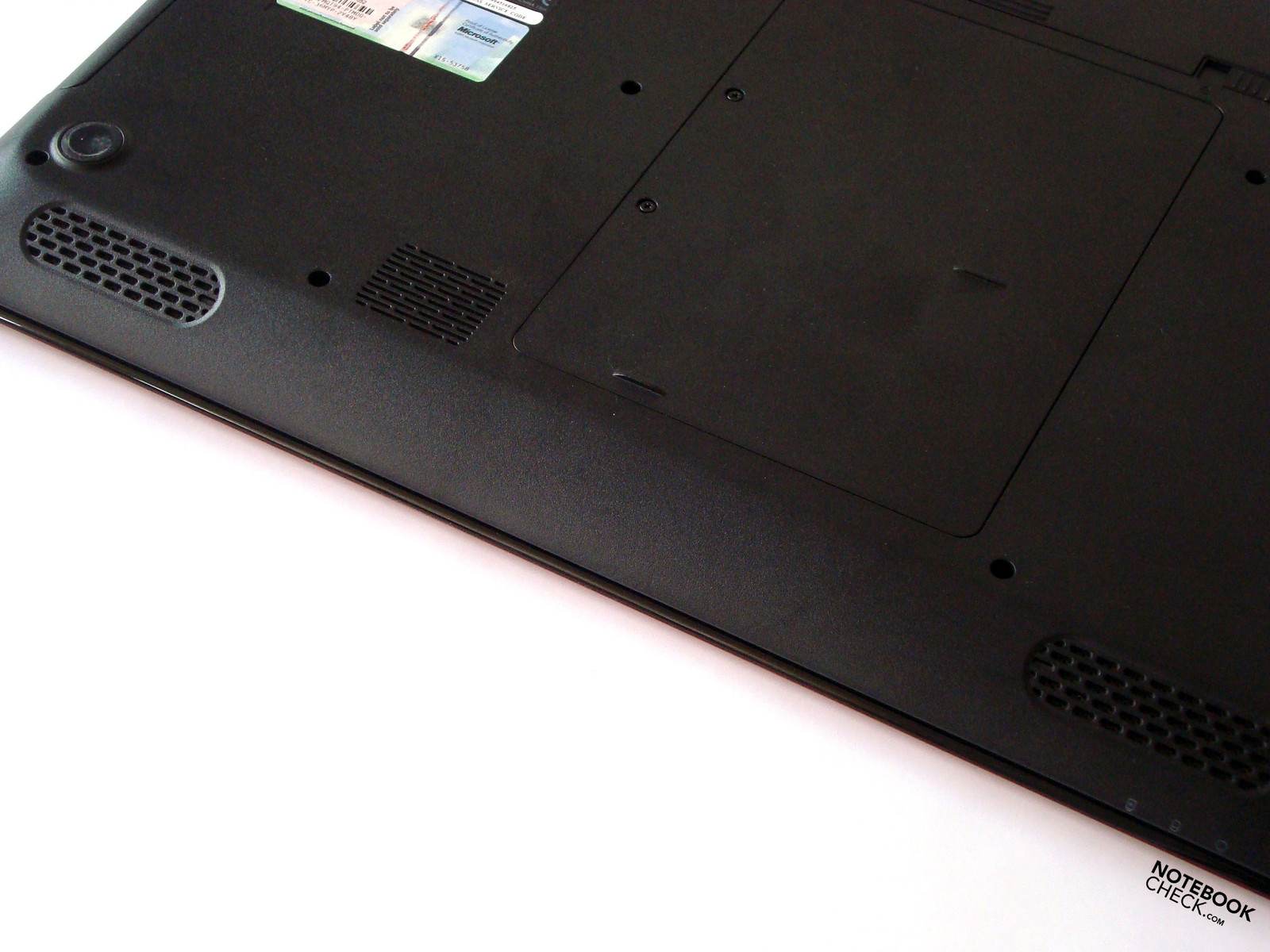 Wer auf der Oberseite nach Lautsprechern sucht, wird beim Inspiron 17 nicht fündig werden, da sich diese im vorderen Bereich auf der Unterseite des Gehäuses positioniert wurden. Wer sein Inspiron 17R mit mehr Arbeitsspeicher bestücken will, benötigt lediglich etwas Fingerspitzengefühl und den geeigneten Schraubendreher. Durch Entfernen der Abdeckung, die lediglich mit zwei Schrauben gesichert ist, kommt man recht gut an die RAM-Bausteine heran.