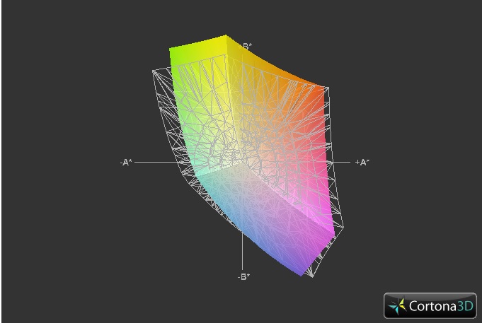 Das verbaute Panel deckt den Referenz-Farbraum (sRGB) fast vollständig ab. Für den Vergleich mit dem Farbspektrum des Adobe RGB reicht es allerdings nicht aus. Allerdings sollte das im Alltag zu keiner Einschränkung führen, sofern das Gerät nicht für die professionelle Bildbearbeitung vorgesehen ist. Schließlich handelt es sich hierbei um ein Consumer-Gerät, ohne professionellen Ansprüchen gerecht werden zu müssen.