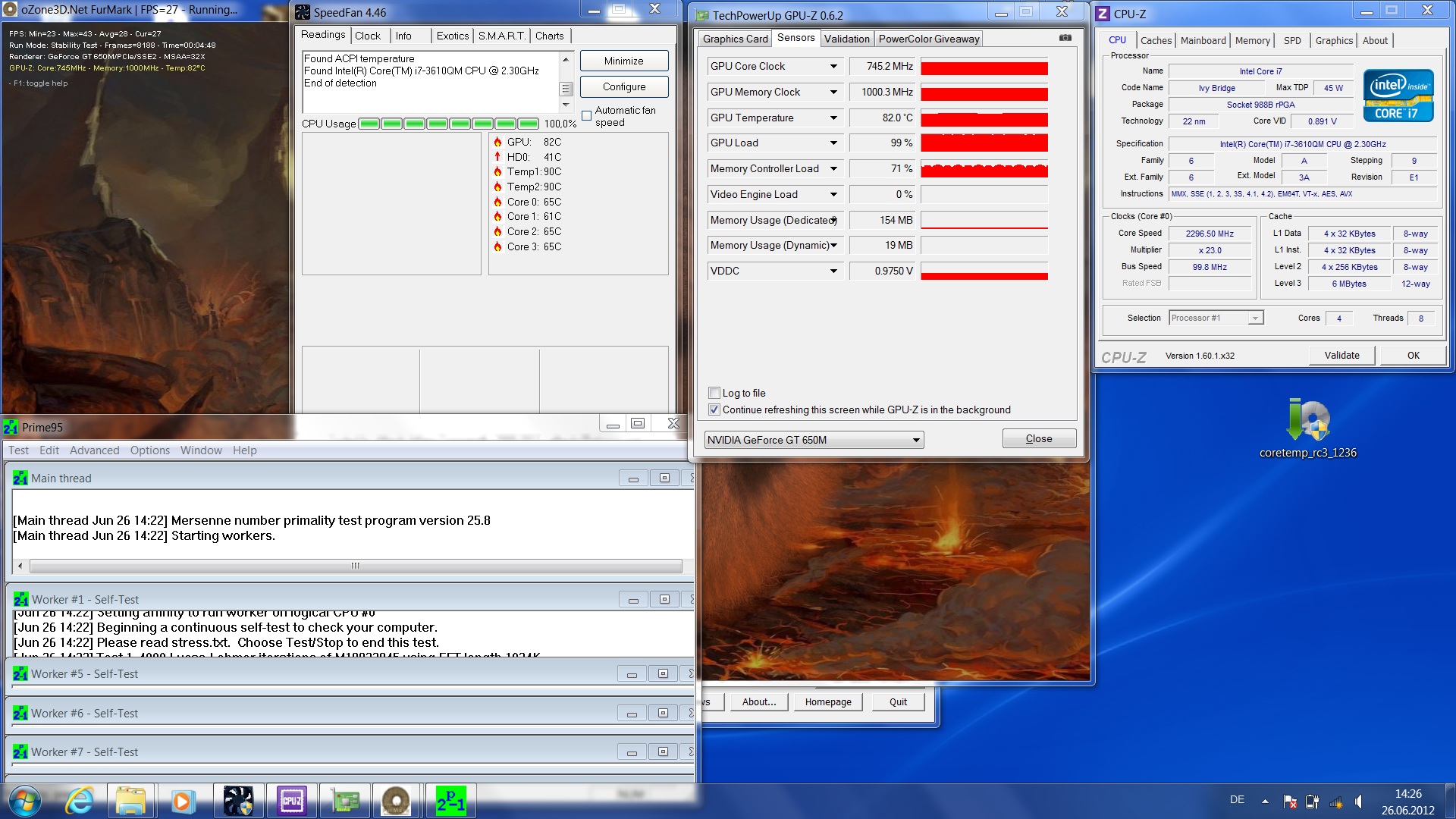 Die Performance der GeForce GT 650M liegt durch die höheren Taktraten deutlich über der der GT 640M, auch wenn das schmale Speicherinterface gelegentlich zu einem leichten Flaschenhals wird. Verglichen mit der Vorgeneration ordnet sich die GT 650M auf Höhe des älteren High-End-Modells GTX 560M ein und abhängig vom Benchmark auch teilweise etwas darüber. Sie ist durchaus in der Lage, aktuelle Spiele flüssig und in hohen Details wiederzugeben, allerdings stößt auch die GeForce GT 650M vor allem bei hohen Auflösungen schnell an ihre Grenzen. Für die native Auflösung von 1920 x 1080 Bildpunkten reicht die gebotene Leistung - abhängig vom Spiel und dessen Detailgrad - meistens leider nicht aus. Für die praktische Leistungsperformance bei den Games verweisen wir auf den Abschnitt Spieleleistung. Sollte die Leistung der GT 650M nicht benötigt werden, so klinkt sich, Dank der Optimus Technologie, die in der CPU integrierte Intel HD Graphics 4000 GPU ein und übernimmt das Rendern der Bilder.