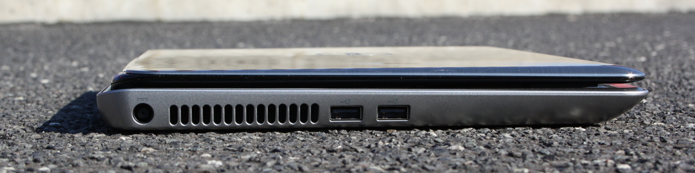 Die zwei USB 2.0 Ports (links) werden durch einen dritten in Form einer eSATA/USB-Kombination ergänzt. Wer eSATA zur schnellen Anbindung externer Festplatten benutzt, der hat folglich nur zwei USB-Steckplätze zur Verfügung. eSATA in Subnotebooks ist selten, aber für den angepeilten Nutzungszweck als mobile Unterhaltungsmaschine sehr nützlich. Enorme Datenmengen an Filmen oder Musik können von einem externen Medium schnell überspielt bzw. zurückgeschrieben werden.