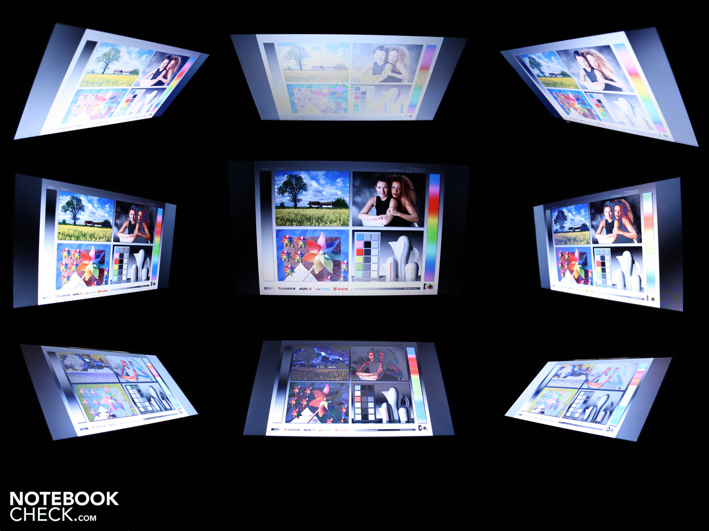 Der geringe Kontrast von 182:1 muss gerade wegen der Unterhaltungsambitionen gerügt werden. Farben wirken nicht brillant, Schwarz hat einen feinen, grauen Schimmer. Der Glare-Type sorgt zwar für eine optische Aufbesserung der Farbwirkung, aber zum Multimedia-Display reicht es dennoch nicht. Ein Multimedia-Taugliches Notebook-TFT (auch in matt) beginnt bei Kontrasten von 500:1. Selbst Netbooks können dies manchmal bieten (Sony M11M1E/W), wobei kostengünstige Einsteiger-Notebooks aktuell chronisch an einem zu niedrigen Bildkontrast leiden.