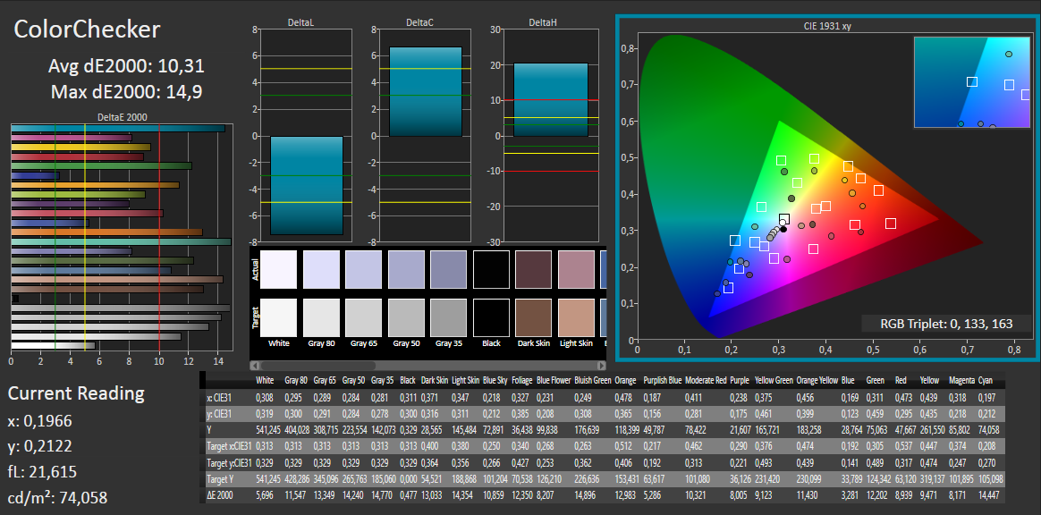 ΔE ColorChecker Calman: 10.31 | ∀{0.5-29.43 Ø4.78}