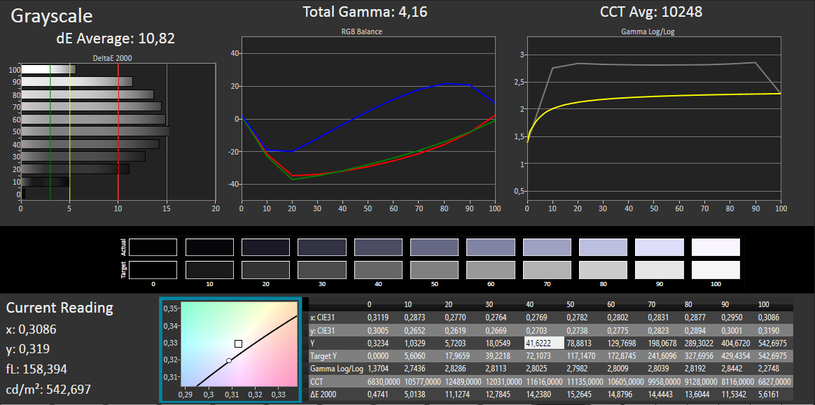 ΔE Greyscale Calman: 10.82 | ∀{0.09-98 Ø5}