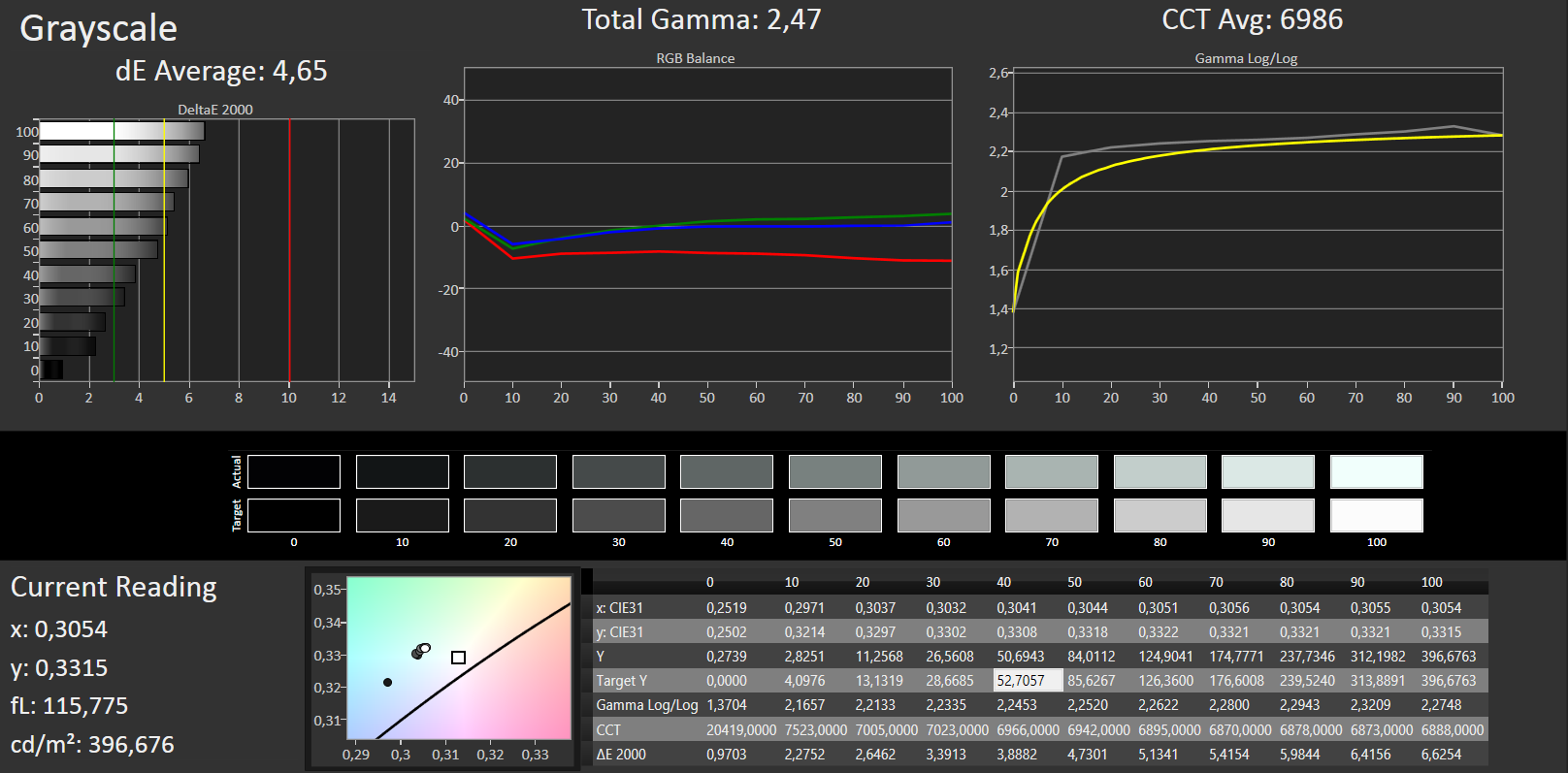 ΔE Greyscale Calman: 4.65 | ∀{0.09-98 Ø5}