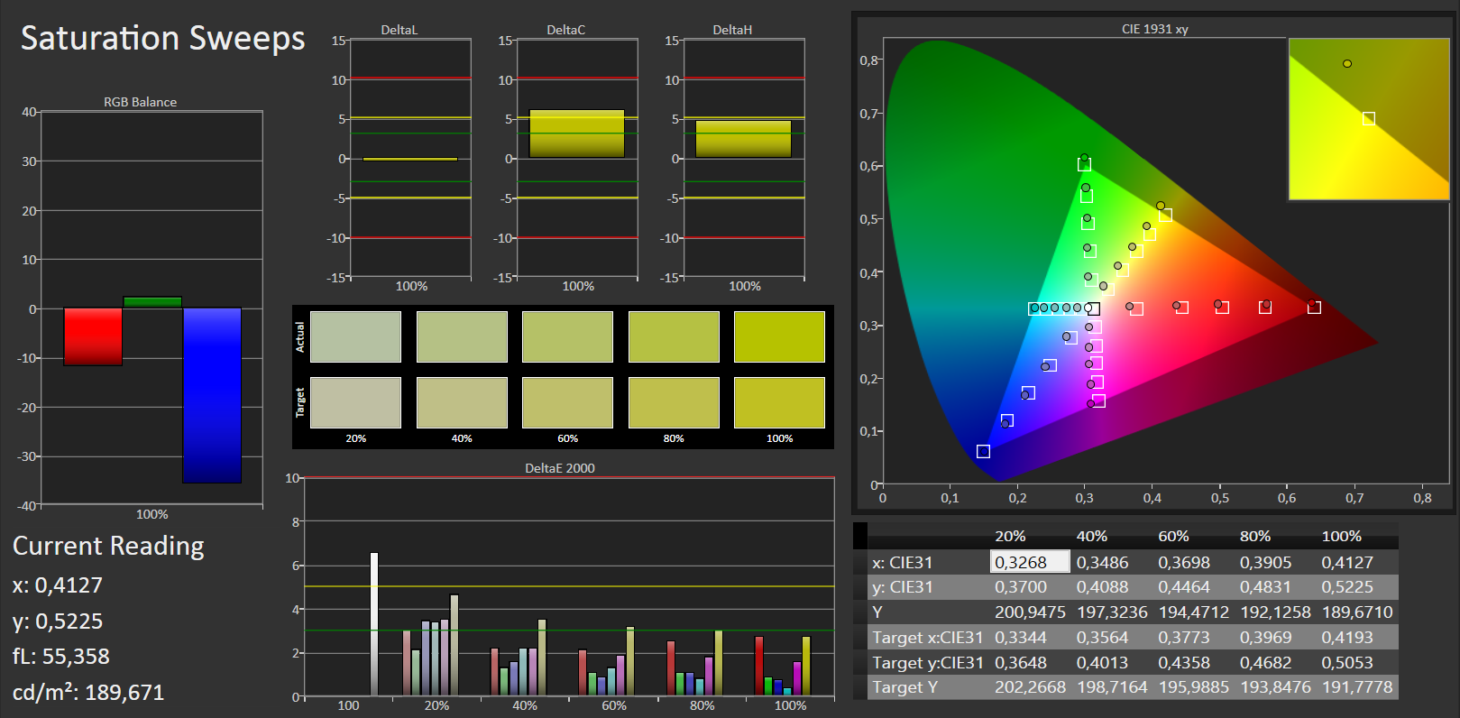 ΔE ColorChecker Calman: 3.1 | ∀{0.5-29.43 Ø4.78}