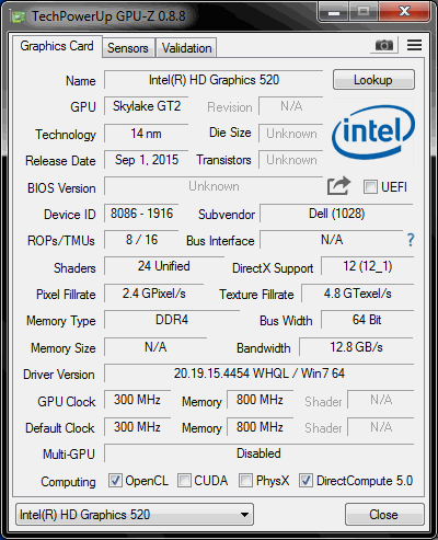 Zur verbauten Grafiklösung im 3470 muss man wohl nicht viel sagen. Schließlich ist die Intel HD 520 vermutlich die am meisten verbaute GPU in Notebooks der Skylake-Generation. Um es kurz zu machen: Die HD 520 ist eine in den Prozessor integrierte GPU, die in der GT2 Ausbaustufe verbaut ist, also mit 24 Execution Units (EUs) daherkommt. Ihr maximaler Turbo-Takt beträgt 1.000 MHz, und da es sich um eine iGPU handelt, verfügt die HD 520 nicht über einen eigenen Speicher, sie teilt sich stattdessen den Hauptspeicher mit der CPU.