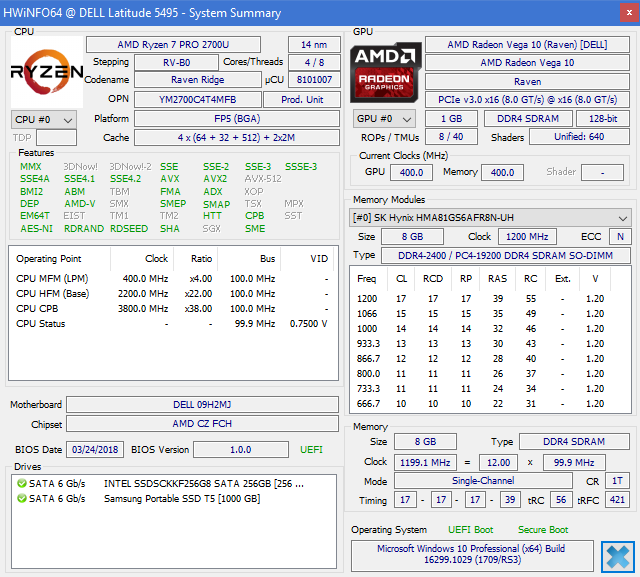Für den deutschen Markt gibt es vier verschiedene Modelle des Dell Laptop Latitude 14 5495. Drei dieser Modelle setzen auf den AMD Ryzen 7 Pro 2700U als Prozessor, eines enthält den günstigeren Ryzen 5 Pro 2500U. Diesen Prozessoren stehen 8 oder 16 GB DDR4-2400-RAM zur Seite (offiziell maximal 32 GB mit zwei RAM-Slots, inoffiziell könnten auch 64 GB möglich sein). Die SSD hat bei allen Modellen für den deutschen Markt eine Kapazität von 256 GB.