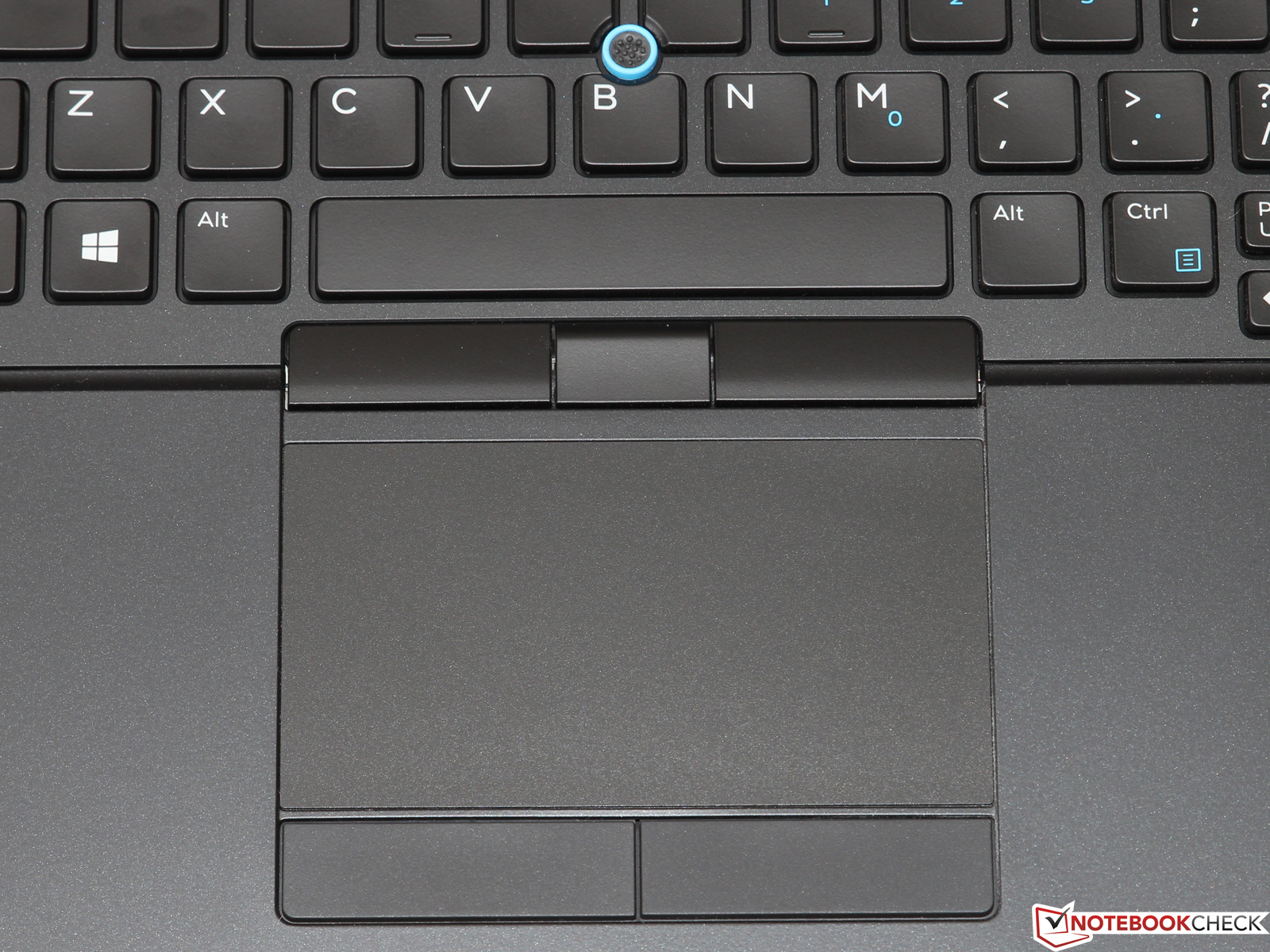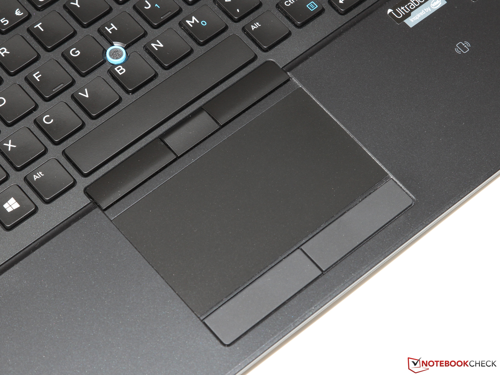 Unterhalb des Keyboards befindet sich das auf nunmehr 10,0 x 5,4 Zentimeter angewachsene Touchpad, welches allerlei Gesten mit zwei, drei oder vier Fingern beherrscht. Mühlelos und stotterfrei gleitet die Fingerspitze über die glatte Oberfläche, die sich bei Tastatureingaben automatisch deaktivieren lässt und so Fehleingaben vorbeugen kann. Aus ergonomischer Sicht sehr zu begrüßen ist die Entscheidung von Dell, dem E7450 weiterhin dedizierte Maustasten mit knackigem Anschlag zu spendieren – wer schon einmal Drag'n'Drop-Befehle auf einem modernen Clickpad ausgeführt hat, weiß, wovon wir reden.
