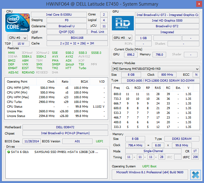 | Dell Latitude E7450 HD Graphics 5500, 5300U, Samsung SSD PM851 mSATA 128 GB | Lenovo ThinkPad T440s 20AQ006BGE GeForce GT 730M, 4600U, Samsung SSD 840 250GB MZ7TD256HAFV | HP EliteBook 840 G1 HD Graphics 4400, 4600U, Intel SSD Pro 1500 Series SSDSC2BF180A4H | Asus ASUSPRO Advanced BU401LA-CZ020G HD Graphics 5000, 4650U, Liteonit LCS-256M6S | |