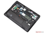 Nach dem Entfernen des Akkus müssen lediglich noch zwei Schrauben gelöst werden, um die großflächige Bodenplatte des Notebooks abnehmen zu können. Darunter lassen sich unter anderem die beiden DDR3-Speicherslots (davon einer unbelegt), ein 2,5-Zoll-Schacht für Massenspeicher (belegt), das WLAN-Modul sowie ein freier Steckplatz für eine WWAN-Karte (M.2) entdecken. Vorbildlich: Die notwendigen Antennenkabel hat Dell bereits vorverlegt. Ebenso einfach gestaltet sich die Reinigung des gut zugänglichen Lüfters.