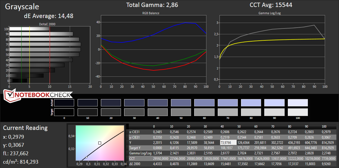 ΔE Greyscale Calman: 14.48 | ∀{0.09-98 Ø5}