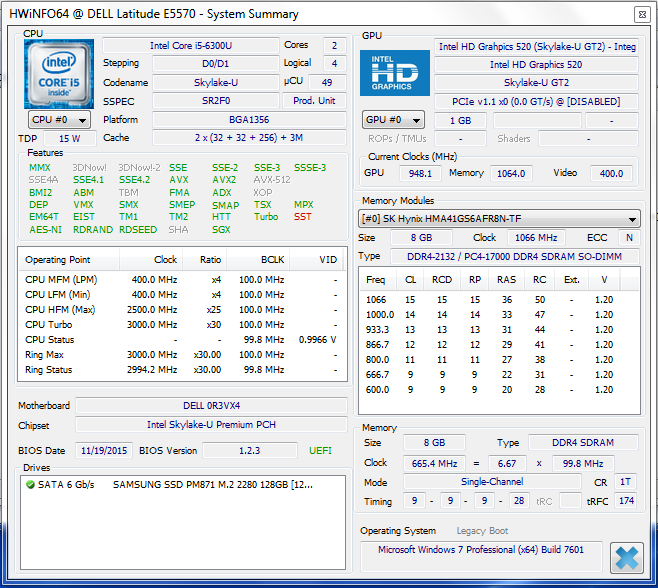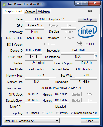 | Dell Latitude 15 E5570 6300U, HD Graphics 520 | Dell Latitude E5550 Broadwell 5300U, HD Graphics 5500 | HP EliteBook 850 G3 6500U, HD Graphics 520 | Lenovo ThinkPad L560-20F10026GE 6200U, HD Graphics 520 | Toshiba Tecra A50-C-1G0 5200U, HD Graphics 520 | Dell Latitude E5570 N026LE557015EMEA 6440HQ, Radeon R7 M370 | |