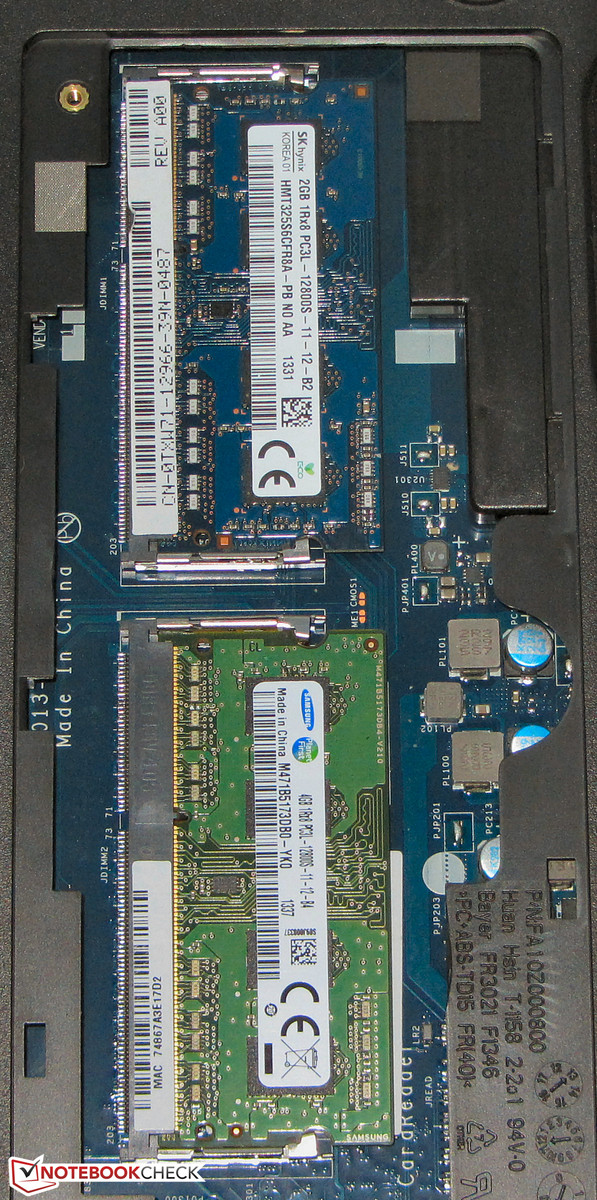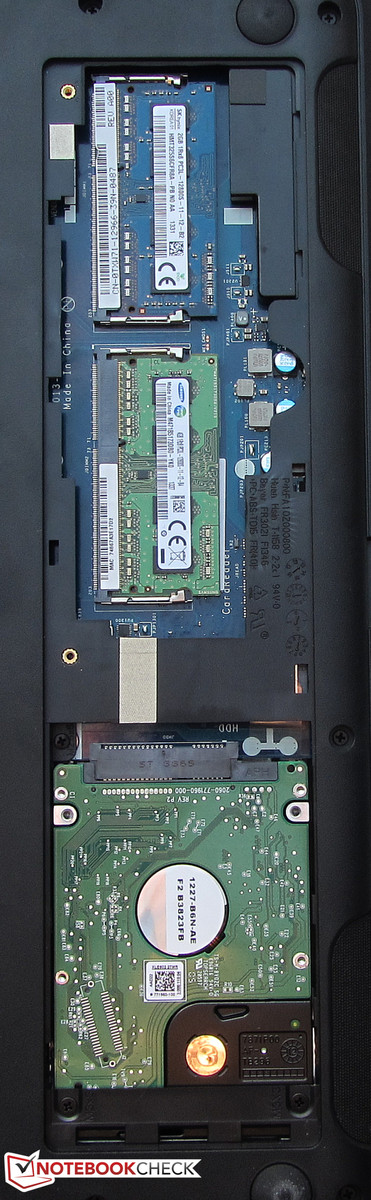Das Latitude ist mit einer kleinen Wartungsklappe ausgestattet, die lediglich den Zugriff auf die Festplatte und den Arbeitsspeicher erlaubt. Das Notebook ist mit zwei Arbeitsspeicherbänken ausgestattet, die beide belegt (1 x 4 GB, 1x 2 GB) sind. Es passen 2,5-Zoll-Festplatten in den Bauhöhen 7 und 9,5 mm in den Rechner.