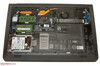 Dell hat dem Latitude eine große Wartungsklappe spendiert. Leider erweist sich die Öffnung der Klappe als unnötig schwer. Werden die zwei Halteschrauben der Klappe gelöst, heben sich die beiden hinteren Ecken der Wartungsklappe etwas. Allerdings reicht es nicht aus, um mit einem Finger unter die Klappe zu kommen. Eine Aussparung, in der man mit dem Finger Halt finden könnte, bringt die Klappe auch nicht mit. Es findet sich nur eine kleine Kerbe (etwa 4 x 1 mm), in die die Spitze eines Flachkopfschraubendrehers passt, um so die Klappe aufzuhebeln (sie wird von vielen Kunststoffhaken gehalten). Dabei besteht die Möglichkeit, abzurutschen und die Klappe zu zerkratzen. Das kann nicht im Sinne des Erfinders sein. Ist die Klappe geöffnet, hat man Zugriff auf den Arbeitsspeicher, die Festplatte, den Lüfter, das WLAN-Modul und den Akku. Das Latitude ist mit zwei Arbeitsspeicherbänken bestückt, die beide belegt sind. Ein Tausch der Festplatte wäre kein Problem. Auch der Akku könnte im Falle eines Defekts gewechselt werden.