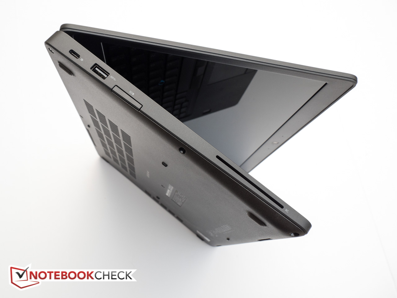 Die Basiseinheit widersteht Verwindungen ziemlich gut, doch gelegentlich konnten wir dabei ein sehr leises Knarren hören. Der Bildschirmdeckel (laut Dell aus kohlefaserverstärktem Polymer) lässt sich etwas leichter verwinden, doch nicht so stark, dass es irgendeinen Einfluss auf die Langlebigkeit hätte. Der Tastatur-Unterbau ist unserer Meinung nach etwas zu weich und Druck auf die G- und H-Tasten links und rechts des "Pointsticks", wie Dell den Trackpoint nennt, verursacht ein ziemlich deutliches Nachgeben. Wie der E5470-Vorgänger wurde das neue Notebook ausführlichen MIL-STD 810G Militärstandard-Tests unterzogen, sodass es rauerer Verwendung unterwegs ziemlich gut standhalten kann.