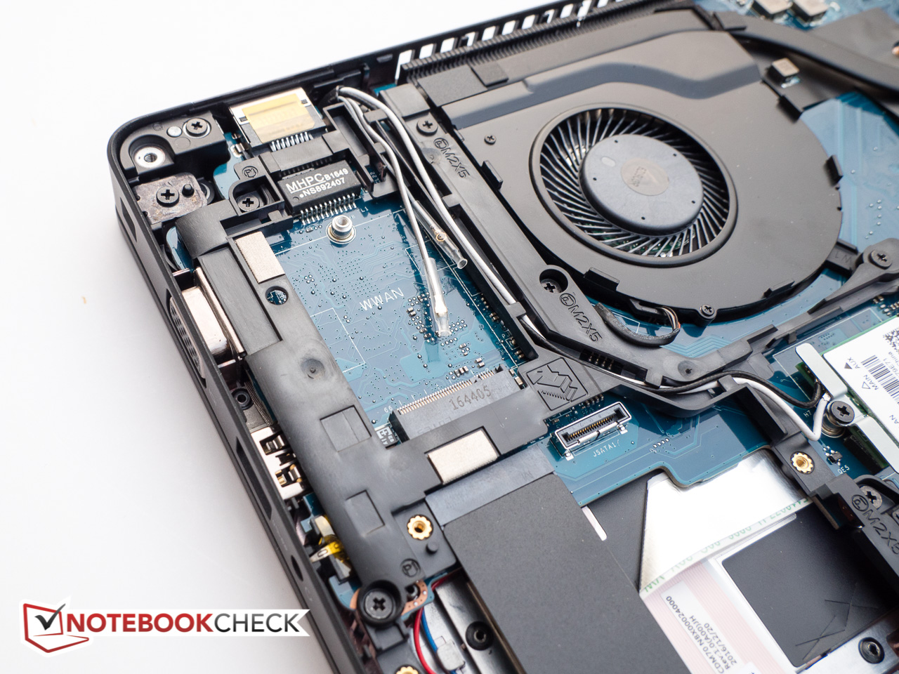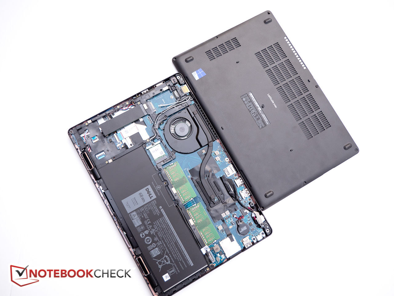 Genau wie beim Vorgänger fehlen beim Latitude 5480 jedwede Wartungsöffnungen oder -klappen. Um zu den inneren Komponenten zu gelangen, ist es daher notwendig, die Unterseite zu entfernen - eine ziemlich einfache Aufgabe, sobald acht Schrauben entfernt sind. Positiv: Die Schrauben sind gesichert - sodass es unwahrscheinlich ist, diese zu verlieren. Sobald die Unterseite abgenommen ist, erhalten User Zugriff auf den Akku, das Laufwerk (M.2 oder 2,5-Zoll), den WWAN-Slot, den RAM-Slots sowie den Lüfter.