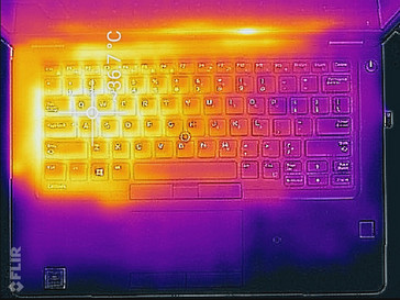 Die Idle-Temperaturen sind ziemlich niedrig. Bei einer Umgebungstemperatur von 20 °C überschritt das Notebook nirgends 27 °C. Extrem hohe Last (Stresstest) verursacht ein Ansteigen der Temperatur auf 45 °C an der hinteren linken Seite, wodurch Verwendung auf dem Schoß etwas unangenehm sein könnte. Die Handballenablagen bleiben immer kühl und überschritten niemals 25 °C. Das Latitude wird ziemlich heiß, vor allem wenn man bedenkt, dass es dicker als die anderen Business-Notebooks in unserem Vergleich ist: Das superschlanke (16,5 mm) ThinkPad X1 Carbon erreicht ein Maximum von 43 °C. Die gesamte Wärmeentwicklung des Latitude bedeutet für das Top-Modell mit 35 W CPU und eigenständiger Grafikkarte nichts Gutes, denn dieses wird wahrscheinlich viel heißer. Der Vorgänger mit Core i5-6440HQ und integrierter GPU erreichte nur 43 °C - doch es scheint, dass Dell das Kühlsystem überarbeitet hat, da sich der Lüfter an anderer Stelle befindet und die Abwärme über die Rückseite anstatt über die linke Seite aus dem Gehäuse geleitet wird.