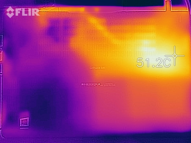 (-) Auf der Unterseite messen wir eine maximalen Wert von 47.5 °C (im Vergleich zum Durchschnitt von 36.8 °C).