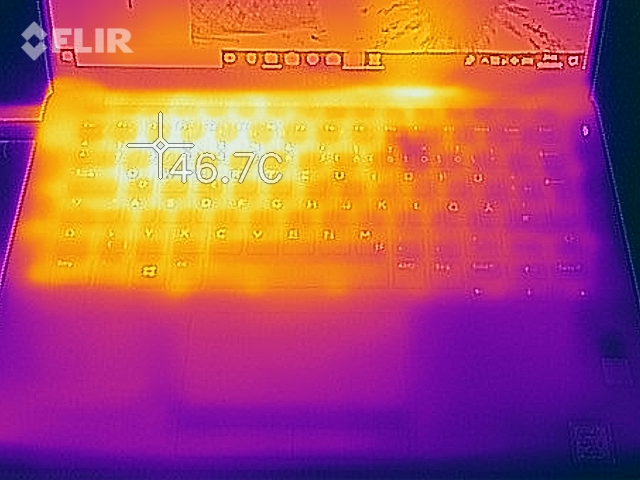 (+) Die Handballen und der Touchpad-Bereich sind mit gemessenen 28.4 °C kühler als die typische Hauttemperatur und fühlen sich dadurch kühl an.