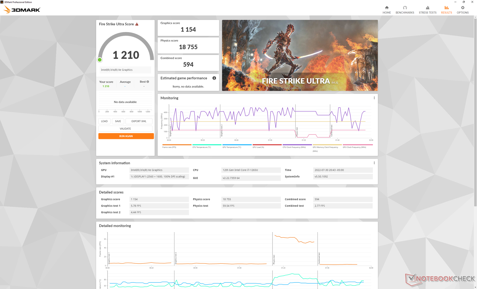 Beim Ausführen von The Witcher 3 stabilisieren sich die GPU-Taktfrequenz und -Temperatur bei 1.097 MHz bzw. 66 °C, beim Latitude 9420 2-in-1 waren es ~1.200 MHz bzw. 73 °C und beim MSI Summit E14 Flip 1.197 MHz bzw. 85 °C.