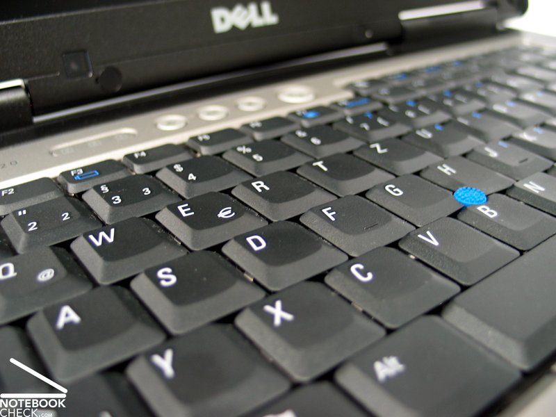 Die Tastatur des Latitude D820 wirkt übersichtlich und ist grundsätzlich ganz gut gegliedert. Außerdem ist bezüglich der Tastengröße kaum etwas auszusetzen. So verfügt das Gerät über eine zweizeilige Enter-Taste und auch ausreichend große Funktionstasten. Der Cursorblock ist leicht abgesetzt und so gut zu bedienen. Das Schreiben auf der Tastatur ist als durchaus angenehm zu bezeichnen.