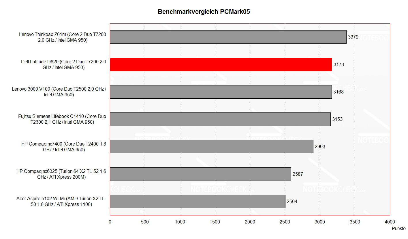 Das Dell Latitude D820 ist damit als klassisches Office Gerät zu bezeichnen, dessen Vorteile im Bereich Emissionen und Akkulaufzeit zu finden sind.