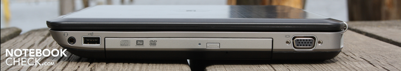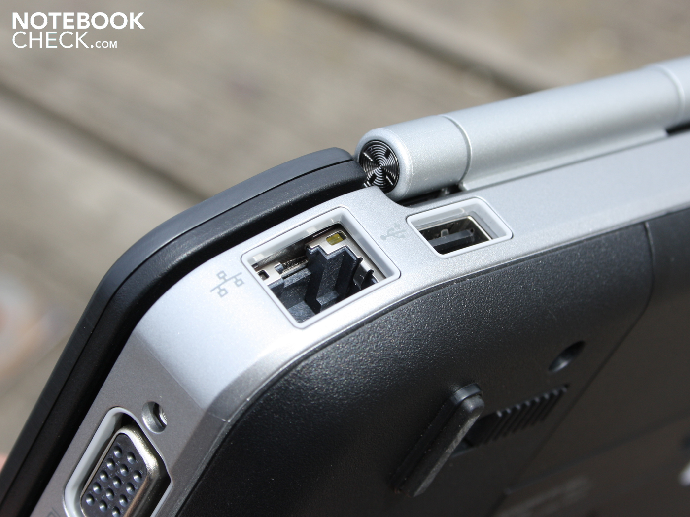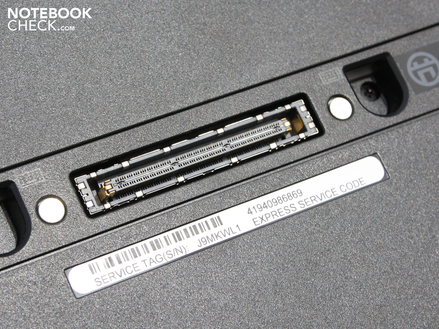 Die Schnittstellenpracht auf der linken Seite bringt Kensington-Lock, FireWire, HDMI, eSATA/USB, 1xUSB 2.0, PC-Card (PCMCIA) und Kartenleser dicht an dicht zusammen. Bei massiver Verkabelung würde eine sperrige Kabelpeitsche den Schreibtisch belegen. Die spezielle Docking-Lösung für den Latitude kommt diesem Szenario aber zuvor. Die E-Port Dockingstation der E5400 und E5410 Serien sind mit dem E5420 kompatibel.