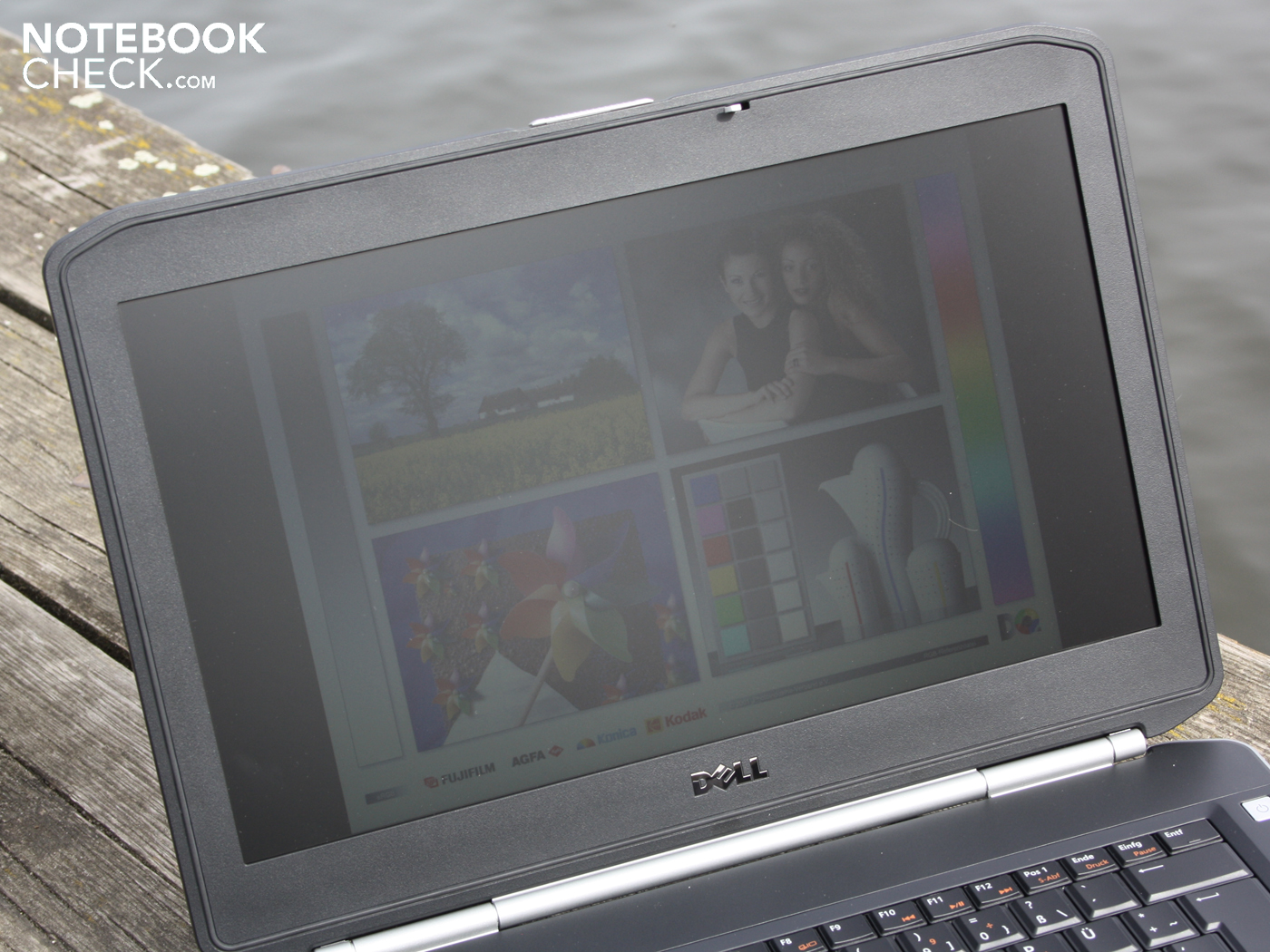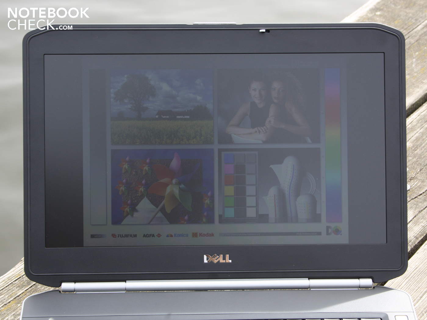 Die Entspiegelung eines Notebook-Panels ist die erste und wichtigste Voraussetzung für entspanntes Arbeiten unter Tageslicht. Wie wir den Latitude E5420 auch drehen und wenden, keine Spiegelungen stören. Nebenstehende Fotos zeigen das Panel bei bestem Sonnenschein. Bei frontalem Blick reicht die geringe Luminanz gerade noch aus, seitlich kann das Bild schon deutlich abdunkeln.