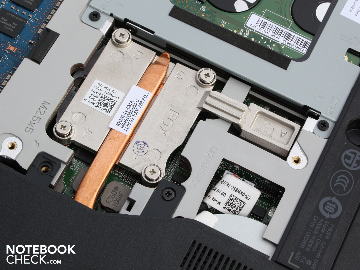Dells 14-Zoller ist mit einem Intel Core i3-2310M (2 x 2.1 GHz) ausgestattet. Die brandaktuelle Core i3 2-Kern-CPU beherrscht kein Turbo Boost, wohl aber Hyperthreading (auf 4 Threads rechnen). Der CPU-Stromverbrauch liegt laut TDP bei 35 Watt. Davon benötigen die zwei physischen Rechenkerne 25 Watt. 10 Watt benötigt die integrierte Intel HD 3000 Grafiklösung und der Speicherkontroller. Im Vergleich zu den teureren Core-i5-Modellen, wie i5-2540M, hat der i3-2310M keine Unterstützung für AES New Instructions. AES hilft beim Ver- oder Entschlüsseln. Dell erlaubt eine Konfiguration über 2540M bis zu i7-2620M (Dual Core).