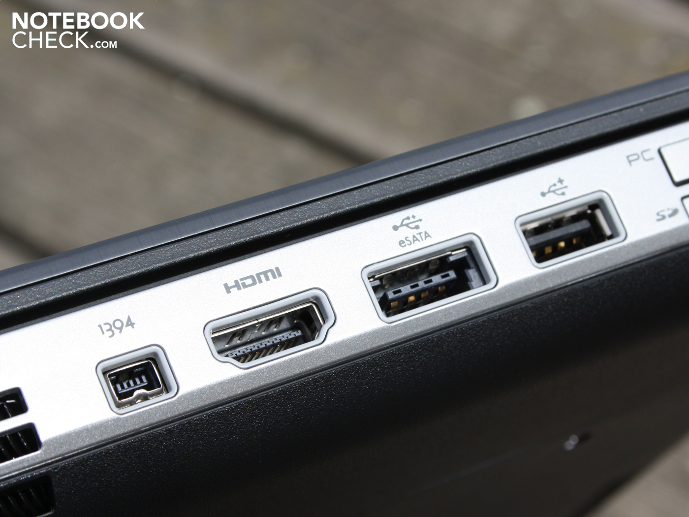 Profis und anspruchsvolle Consumer bewerten die Anschlussvielfalt im Allgemeinen sehr hoch. Der 14-Zoller hat alles dabei, was wir von einem Arbeitsnotebook erwarten, ohne dabei die Vielfalt einer Precision Workstation zu bieten. Hierzu gehören der verschraubte VGA-Anschluss, ein PC-Card Schacht (PCMCIA) und FireWire. Der alte PC-Card Standard, der bereits seit Jahren in der Consumer-Welt aus der Mode gekommen ist (durch ExpressCard ersetzt), wird im Business-Umfeld durchaus noch nachgefragt. Hier können spezielle Erweiterungskarten (meist Controller) eingesteckt werden. Der Anschluss für schnelle externe Festplatten eSATA ist an Bord, jedoch kein USB 3.0.