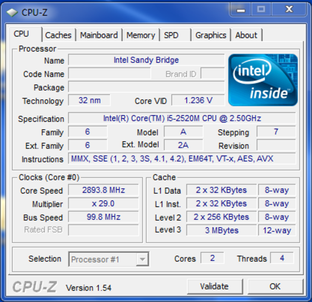 Das Herzstück des Dell Latitude E5520 Notebooks ist der Intel Core i5-2520M Prozessor. Hierbei handelt es sich um einen High-End-Doppelkern-Prozessor aus der aktuellen Sandy Bridge Familie. Mit einem Standardtakt von 2.5 GHz verfügt der Prozessor so schon über einiges an Leistung. Sollte es dennoch einmal zu Leistungsengpässen kommen, besitzt der Prozessor die Möglichkeit, in unterschiedlichen Stufen übertaktet zu werden. Wird nur ein Prozessorkern benötigt, kann dieser auf bis zu 3.2 GHz übertaktet werden. Werden beide Prozessorkerne beansprucht, kann der Takt auf 3.0 GHz gesteigert werden. Auf Grund seiner Leistung eignet sich der Prozessor auch für anspruchsvolle Tätigkeiten, wie den HD-Videoschnitt oder 3D-Spiele. Mit einem TDP von 35 Watt ist der Prozessor dabei nicht anspruchsvoller als die kleineren Modelle, allerdings reizt der Intel Core i5-2520M die 35 Watt deutlich mehr aus als beispielsweise ein Intel Core i5-2410M Prozessor. Aufgrund seines TDP von 35 Watt wird der Prozessor auch für Notebooks mit einer Bildschirmdiagonalen von 14 Zoll oder größer empfohlen.