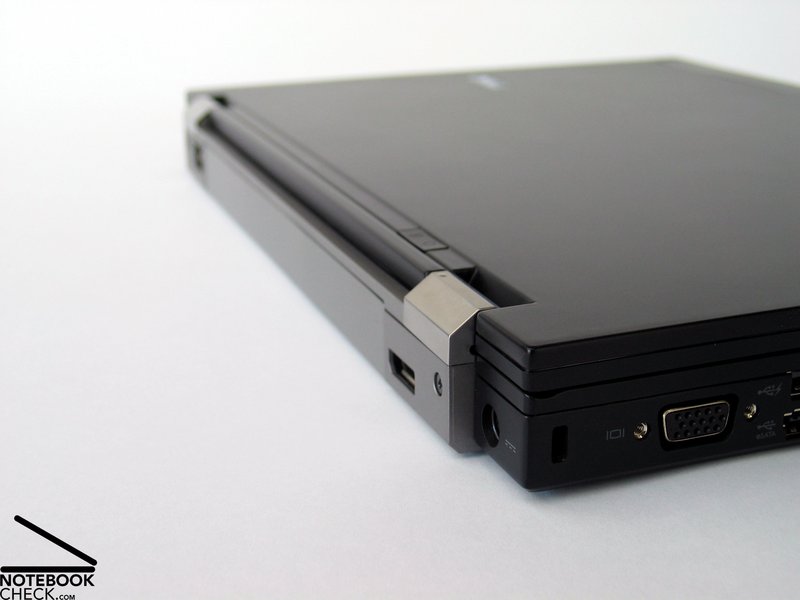 Hier bietet das Dell E6400 die identischen Optionen wie das Precision M2400. Neben 3 USB 2.0 Anschlüssen zählen dazu auch ein digitaler Displayport und ein analoger Monitoranschluss, Firewire und ein eSATA Port zum Anschluss einer externen Festplatte. Die Positionierung der einzelnen Ports ist dabei wie schon beim Dell E6400 als durchaus benutzerfreundlich zu beschreiben, liegen doch die einzelnen Anschlüsse an den Seitenkanten im hinteren Bereich, und beeinträchtigen so selbst bei voller Belegung kaum die Arbeitsbereiche links und rechts neben dem Notebook.