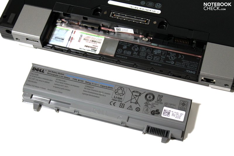 Rein theoretisch kann das Dell Latitude mit den oben genannten Maßnahmen zum Dauerläufer hochgerüstet werden. Billig ist dies allerdings nicht. Unser Testsample verfügte über den in der Standardkonfiguration vorgesehenen 6-Zellen Akku, der bündig an der Rückseite abschließt. Der 9-Zellen Akku mit einer um 50% erhöhten Kapazität (die Laufzeiten Bewegen sich auch etwa in diesem Bereich) kostet im Shop aktuell 65 Euro Aufpreis, und sollte von mobilen Usern auf jeden Fall in Betracht gezogen werden.
