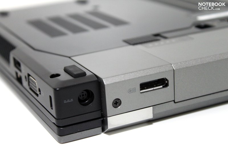 Maßgeblich zu diesem Urteil trägt etwa die Positionierung der einzelnen Ports bei. Dell nutzt das hintere Drittel der Seitenkanten sowie die Rückseite (trotz des mittig platzierten Akkus)konsequent für die Anordnung der verbauten Schnittstellen. Dabei wird nochmals unterschieden zwischen überwiegend dauerhaft genutzten Schnittstellen (LAN, Displayport, Netzanschluss) die allesamt an der Rückseite Platz finden und damit die Arbeitsfläche neben dem Notebook nicht beeinträchtigen. Die übrigen Schnittstellen (VGA, 3xUSB, eSATA, Firewire und Audio) findet man gut einsehbar und aufgeteilt an den Seitenkanten.