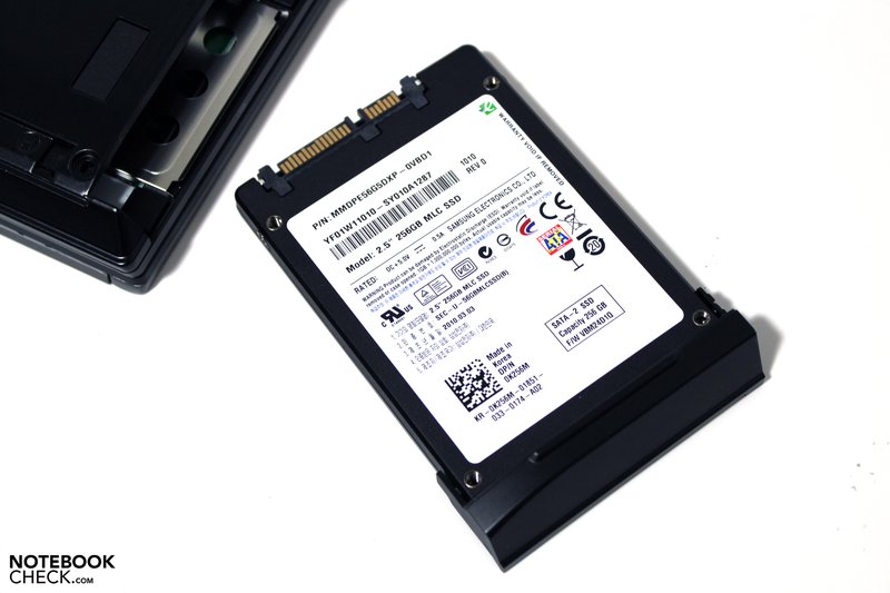 Der letzte Punkt unserer Leistungsbeurteilung gebührt traditionell dem verbauten Massenspeicher. Beim E6410 ist dieser einer der hauptverantwortlichen Komponenten für das hervorragende Abschneiden bei einzelnen Benchmarktests. Zum Einsatz in unserem Testsample kommt ein Solid State Drive (SSD) von Samsung mit der Bezeichnung PB22-J/PM800. Die SSD im 2.5“-Format besitzt eine Kapazität von 256 Gigabyte und wird allein stehend aktuell zu einem Marktpreis von rund 550 Euro gehandelt. In Anbetracht dessen erscheint der Aufpreis von Dell auf eine flotte 7200rpm/320GB HDD von 580 Euro beinahe fair.