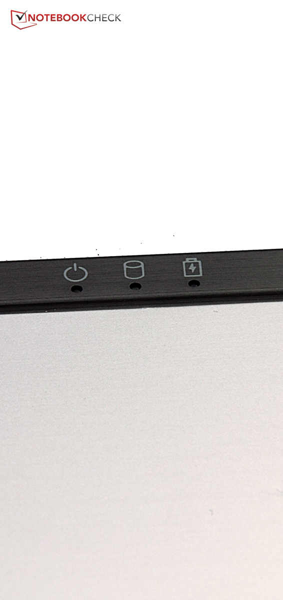Der Deckel lässt sich allerdings trotz des Aluminiumdeckels relativ stark verwinden, es zeigen sich dann auch weiße Schleier im Bild. Druck auf den Deckel nimmt der Bildschirm nicht auf, drückt man allerdings auf den inneren Bildschirmrahmen, sind durchaus Störungen im Bild erkennbar.