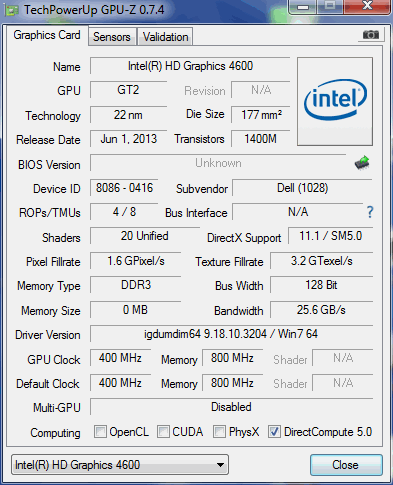 | Dell Latitude E6440 Radeon HD 8690M, 4300M, Seagate ST500LM000 Solid State Hybrid Drive | Toshiba Tecra R940-1FL HD Graphics 4000, 3320M, Toshiba MK3261GSYG | HP ProBook 650 G1 H5G74E HD Graphics 4600, 4000M, Hitachi Travelstar Z7K500 HTS725050A7E630 | Apple MacBook Pro Retina 13 inch 2013-10 Iris Graphics 5100, 4258U, Apple SSD SM0256F | Toshiba Tecra A50-A-12Z GeForce GT 730M, 4300M, Hitachi Travelstar Z7K500 HTS725050A7E630 | |