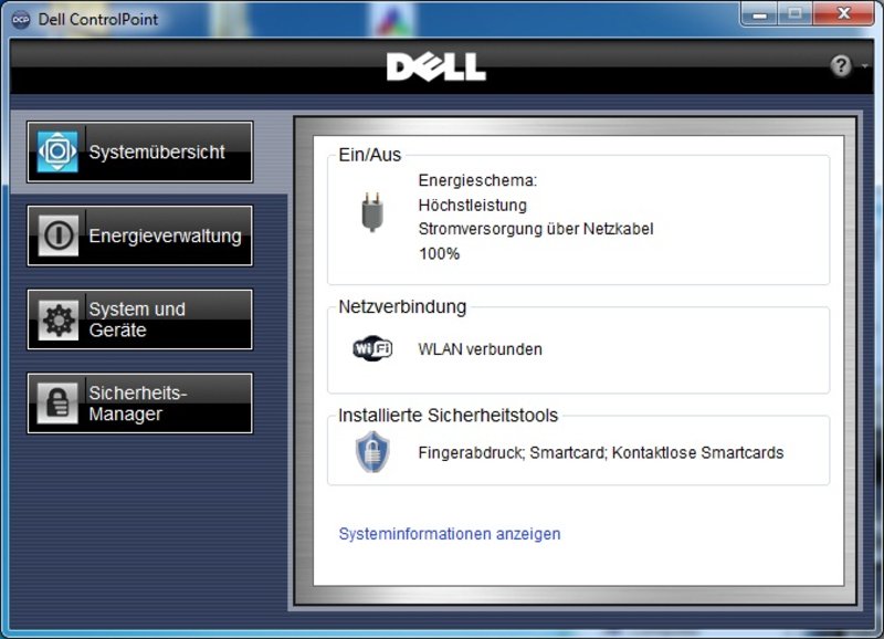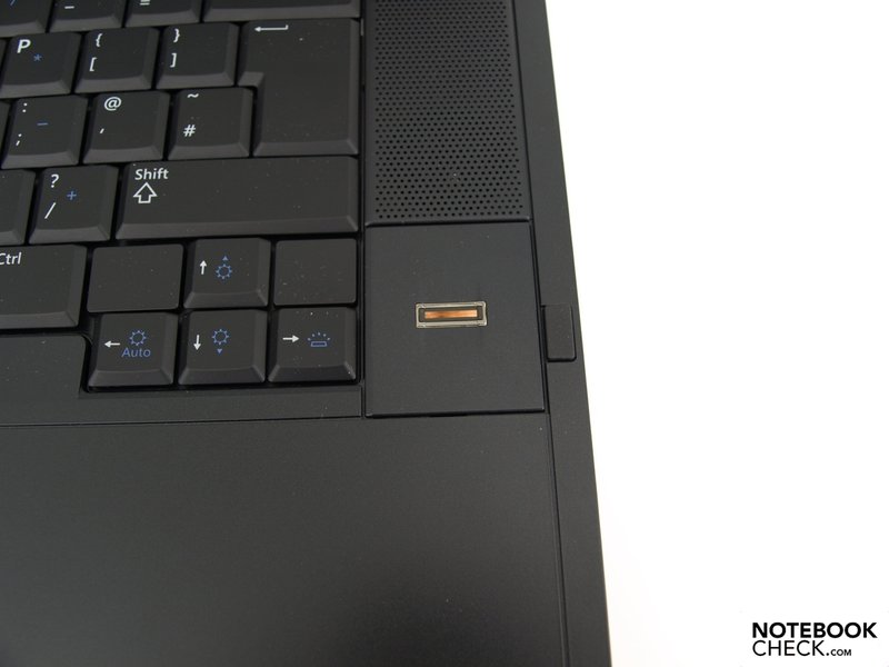 Neben den bereits oben erwähnten Kensington Security Slot findet man beim E6510 noch ein weiteres Sicherheitsfeature, nämlich einen Fingerabdruckleser. Rechts von der Tastatur hat er einen eher unüblichen Platz inne. Vor dem ersten Einsatz muss er mittels des Dell ControlPoint Sicherheitsmanagers konfiguriert werden. Danach kann die Passworteingabe durch Einlesen eines Fingerabdruckes ersetzt werden.
