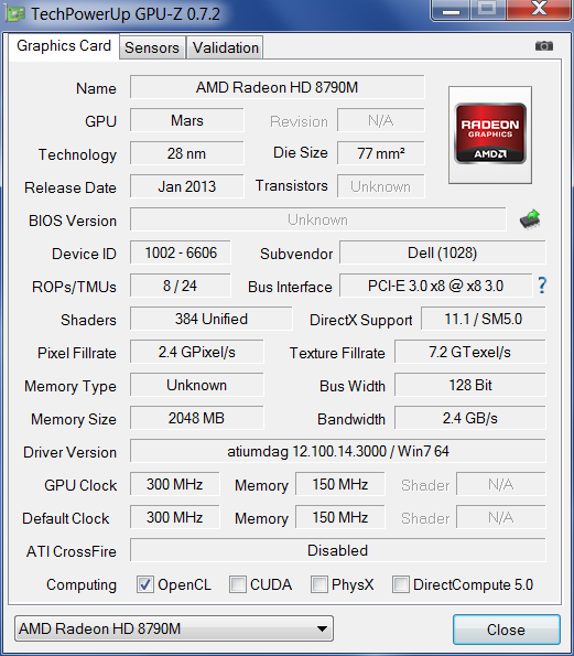 Es gibt aber trotzdem kaum einen Grund, sich zu beklagen. Mit der Intel Core i7 4800MQ hat Dell eine brandaktuelle Quad-Core-CPU mit hoher Leistung gewählt. Wenn die darin integrierte Intel HD Graphics 4600 nicht ausreicht, kann zur dedizierten Grafikkarte AMD Radeon HD 8790M umgeschaltet werden. Diese verfügt über zwei Gigabyte eigenen Speicher.