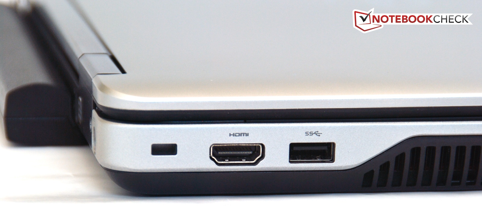 Das Testmodell kann sich in der Anschlussausstattung nicht von Consumer-Notebooks abheben: HDMI und VGA sowie einen Ethernet-Anschluss findet man noch an vielen Notebooks. Dazu kommt noch eine Audio-Buchse, bei der Mikrofon-Eingang und Kopfhörer-Ausgang kombiniert wurden. Der Kartenleser kommt nur mit Speicherkarten im SD-Format zurecht. Positiv sind immerhin die vier USB-3.0-Buchsen. Der eSATA-Port des Vorgängers ist im E6540 dem Rotstift zum Opfer gefallen.