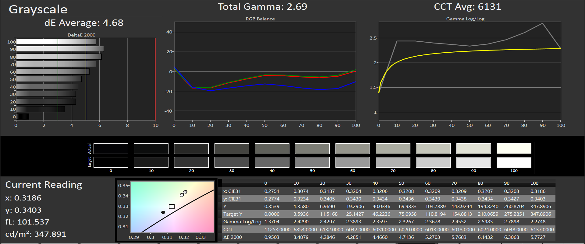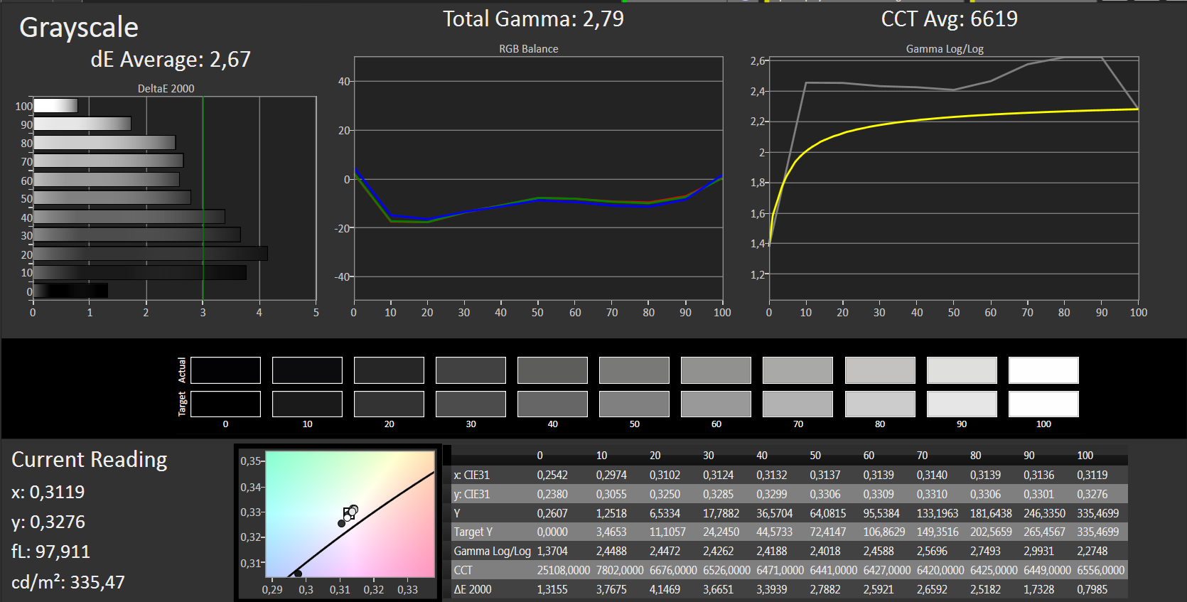 ΔE Greyscale Calman: 2.67 | ∀{0.09-98 Ø5}
