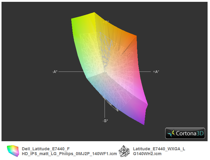 Das Latitude E7440 lässt sich mit insgesamt drei verschiedenen 14-Zoll-Displays bestellen: Die preiswerteste Option ist dabei ein mattes WXGA-Panel mit 1.366 x 768 Bildpunkten und 112 dpi, welches auch in unserem Testgerät verbaut wurde. Wer mehr Arbeitsfläche benötigt, sollte sich jedoch besser für eine der beiden FullHD-Anzeigen mit beziehungsweise ohne Touchscreen entscheiden. Ob die Touch-Option von der Business-Kundschaft wirklich angenommen wird, gilt es allerdings abzuwarten, geht die Wahl dieses Displays doch zwangsläufig mit einer verspiegelten Bildoberfläche einher.