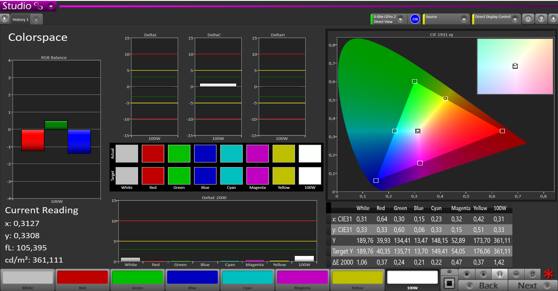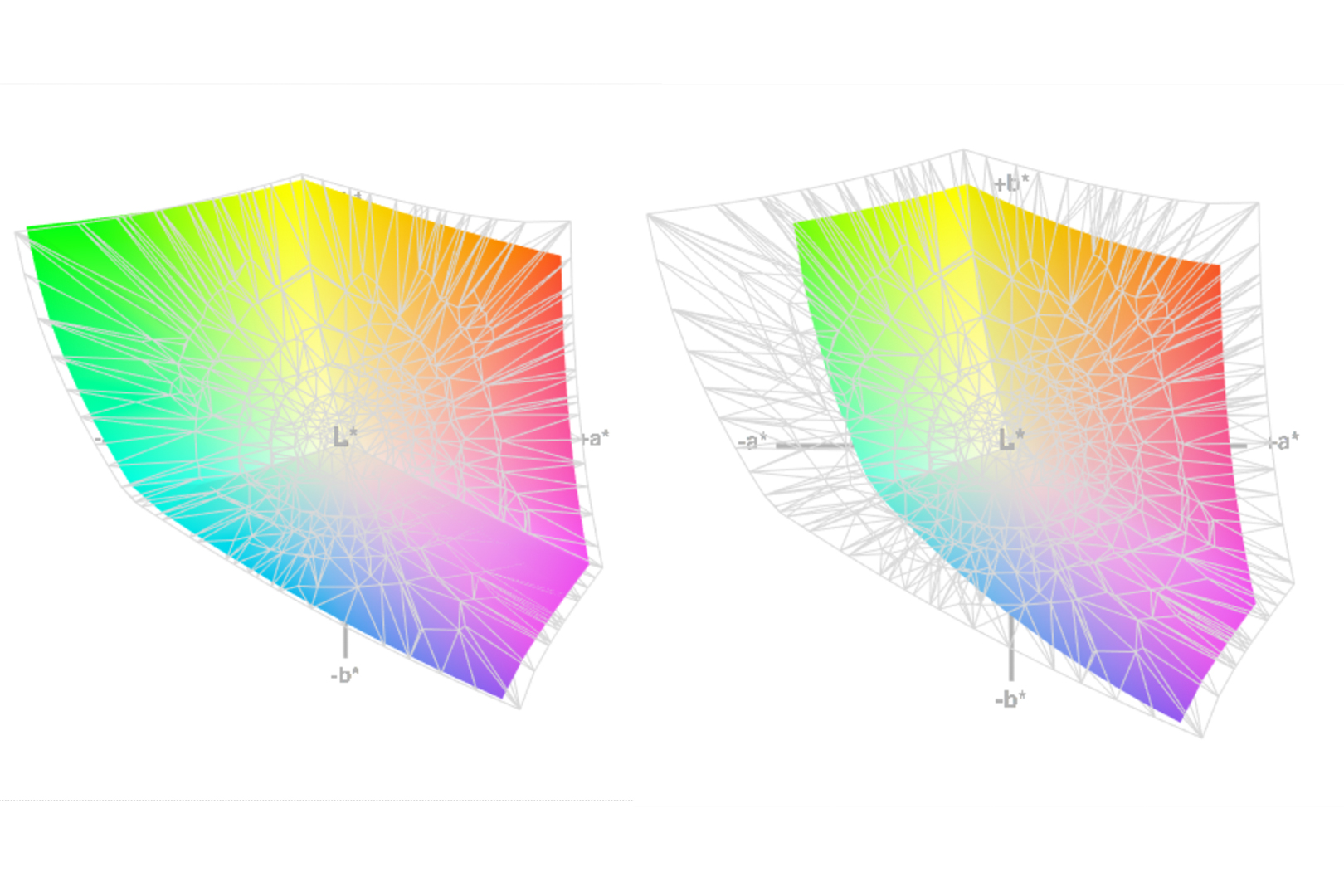 Über alle Helligkeitsstufen hinweg können wir kein Flimmern feststellen. Die Reaktionsgeschwindigkeit des Displays beträgt beim kombinierten Schwarz-Weiß-Wechsel 34 ms und beim kombinierten Grau-Wechsel 56 ms. Für Gamer schneller Spiele ist das nicht ideal, alle anderen sollten keine Einschränkungen befürchten müssen. Der Kontrast beträgt gute 987:1 und sorgt für ein sattes Schwarz. Die Farbraumabdeckung ist beim 4k-Display besonders hoch und deckt den sRGB-Farbraum vollständig ab. Selbst der AdobeRGB-Farbraum wird noch zu über 88 Prozent wiedergegeben. Beide Werte sind hervorragend.