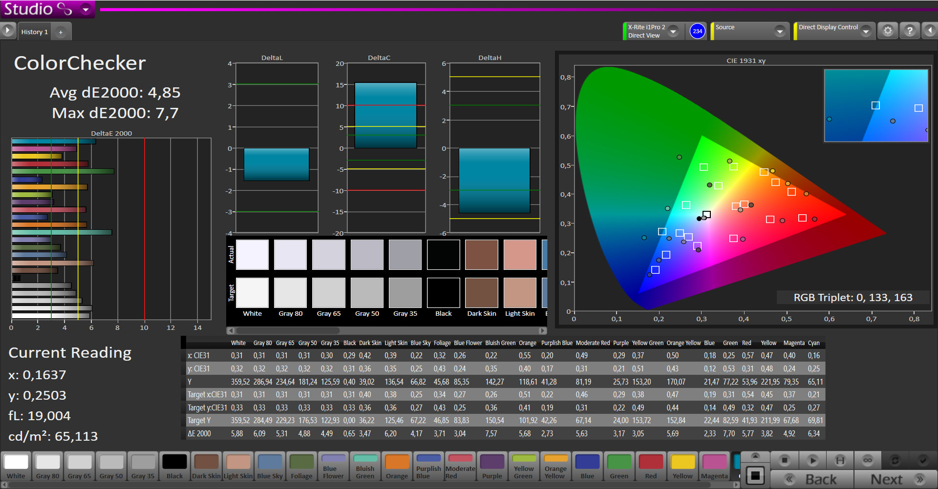 ΔE ColorChecker Calman: 4.85 | ∀{0.5-29.43 Ø4.79}