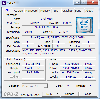 Leider scheint Dell für die Precisions 5510 kein ECC-RAM vorzusehen, womit ein Argument für den Intel Xeon E3-1505 in unserem Testgerät wegbricht. Mit einem Aufpreis von etwa 100 Euro zum Intel Core i7-6820HQ bleibt als Unterscheidungsmerkmal daher nur noch ein nominell 100 MHz höherer Takt übrig. Ansonsten bietet die 45-Watt-CPU Hyperthreading mit bis zu 8 Threads und einen Turbo-Boost, der den Prozessor vom Basistakt von 2,8 GHz auf bis zu 3,7 GHz bei Single-Thread-Anwendungen beschleunigen soll.